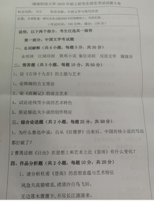 以上就是小编整理的“拼搏在线官网真题:湖南科技拼搏(中国)614-中国文学与现代汉语2020硕士招生考试自命题科目试题”的全部内容!更多真题资料请关注“拼搏在线官网专业课真题”栏目!祝拼搏在线官网成功!