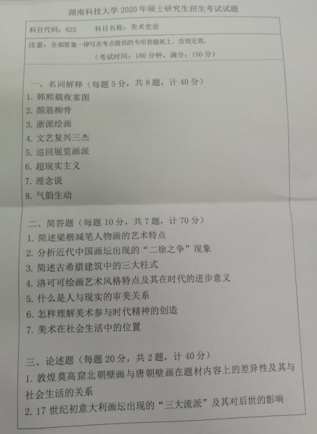 以上就是小编整理的“拼搏在线官网真题:湖南科技拼搏(中国)625-美术史论2020硕士招生考试自命题科目试题”的全部内容!更多真题资料请关注“拼搏在线官网专业课真题”栏目!祝拼搏在线官网成功!