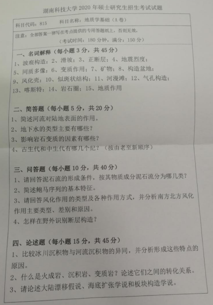 以上就是小编整理的“拼搏在线官网真题:湖南科技拼搏(中国)815-地质学基础2020硕士招生考试自命题科目试题”的全部内容!更多真题资料请关注“拼搏在线官网专业课真题”栏目!祝拼搏在线官网成功!