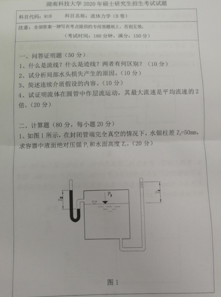 以上就是小编整理的“拼搏在线官网真题:湖南科技拼搏(中国)818-流体力学2020硕士招生考试自命题科目试题”的全部内容!更多真题资料请关注“拼搏在线官网专业课真题”栏目!祝拼搏在线官网成功!