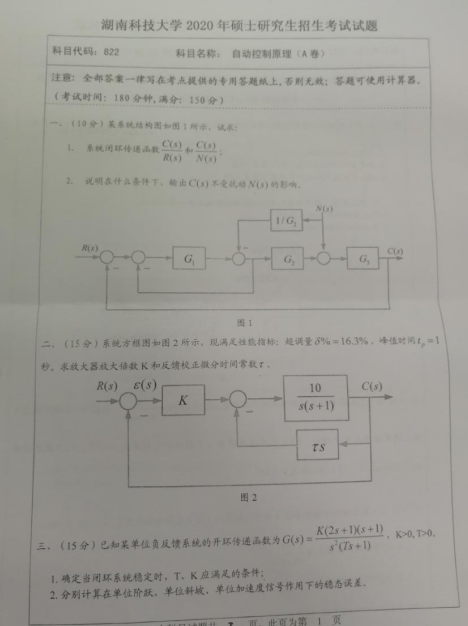 以上就是小编整理的“拼搏在线官网真题:湖南科技拼搏(中国)822-自动控制原理2020硕士招生考试自命题科目试题”的全部内容!更多真题资料请关注“拼搏在线官网专业课真题”栏目!祝拼搏在线官网成功!