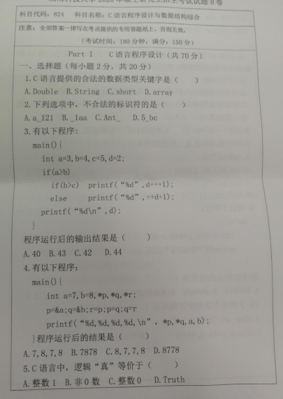 以上就是小编整理的“拼搏在线官网真题:湖南科技拼搏(中国)824-C语言程序设计与数据结构综合2020硕士招生考试自命题科目试题”的全部内容!更多真题资料请关注“拼搏在线官网专业课真题”栏目!祝拼搏在线官网成功!