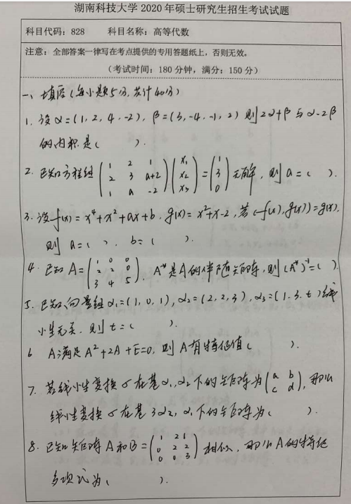 以上就是小编整理的“拼搏在线官网真题:湖南科技拼搏(中国)828-高等代数2020硕士招生考试自命题科目试题”的全部内容!更多真题资料请关注“拼搏在线官网专业课真题”栏目!祝拼搏在线官网成功!