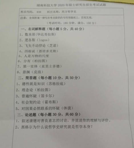 以上就是小编整理的“拼搏在线官网真题:湖南科技拼搏(中国)838-西方哲学史2020硕士招生考试自命题科目试题”的全部内容!更多真题资料请关注“拼搏在线官网专业课真题”栏目!祝拼搏在线官网成功!