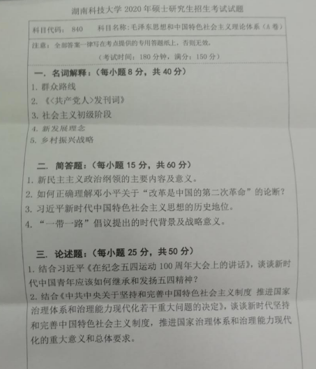 以上就是小编整理的“拼搏在线官网真题:湖南科技拼搏(中国)840-毛泽东思想和中国特色社会主义理论体系2020硕士招生考试自命题科目试题”的全部内容!更多真题资料请关注“拼搏在线官网专业课真题”栏目!祝拼搏在线官网成功!