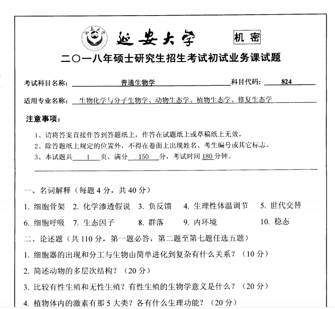 以上就是小编分享“拼搏在线官网真题:延安拼搏(中国)824普通生物学2018年硕士研究生招生考试初试业务课试题”的全部内容内容,想了解更多拼搏在线官网相关信息,请持续关注研线网。