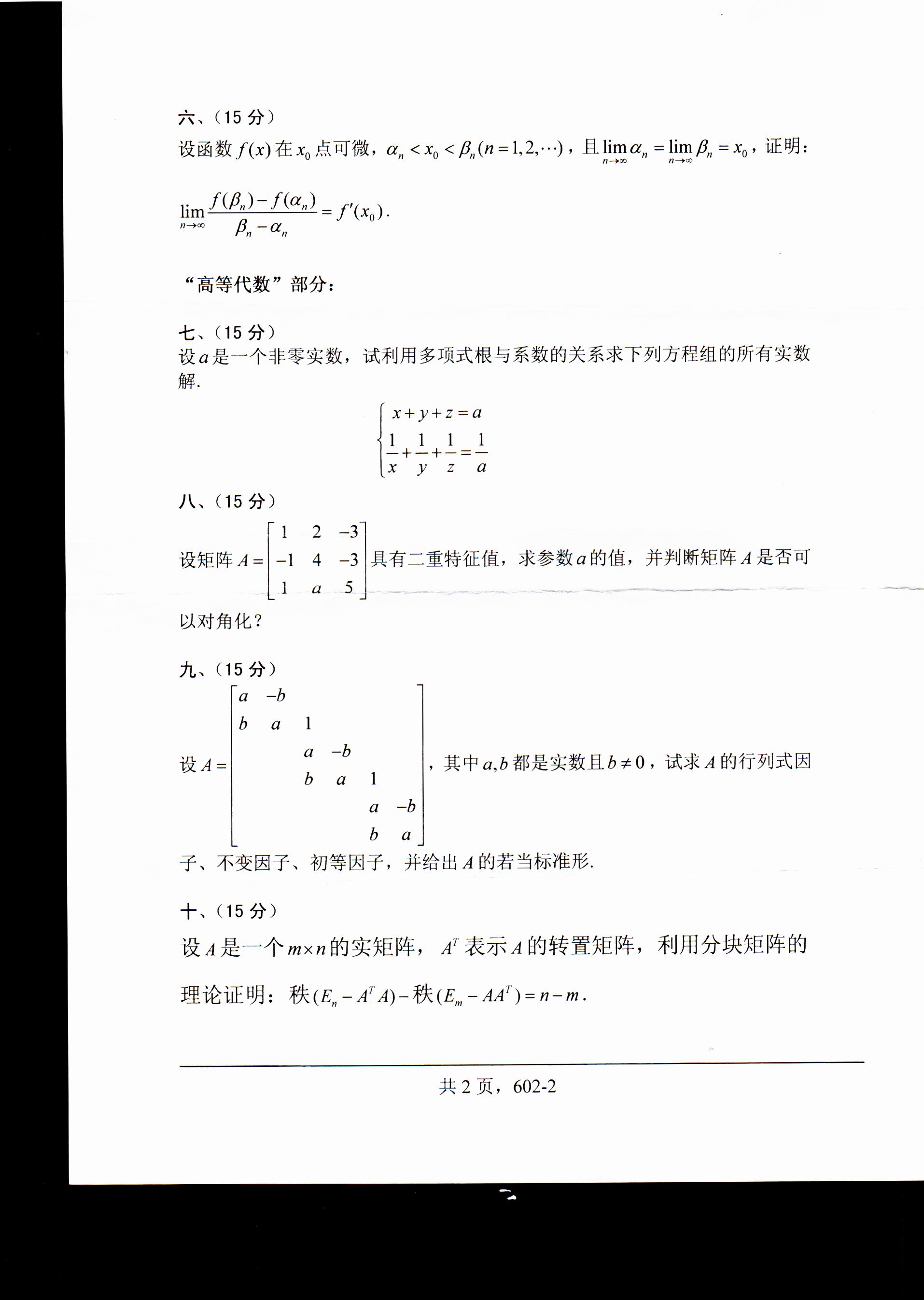 原文标题:公布近年硕士研究生专业课试题