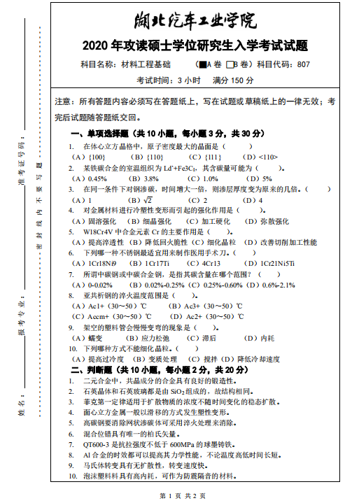 以上就是小编整理的“拼搏在线官网真题:湖北汽车工业学院807材料工程基础2020年攻读硕士学位研究生招生入学考试试题”的全部内容!更多真题资料请关注“拼搏在线官网专业课真题”栏目!祝拼搏在线官网成功!