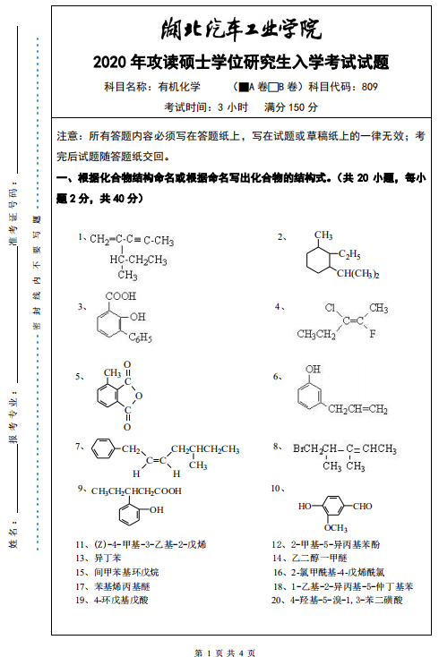 以上就是小编整理的“拼搏在线官网真题:湖北汽车工业学院809有机化学2020年攻读硕士学位研究生招生入学考试试题”的全部内容!更多真题资料请关注“拼搏在线官网专业课真题”栏目!祝拼搏在线官网成功!