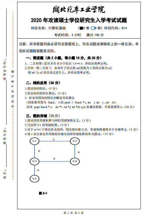 以上就是小编整理的“拼搏在线官网真题:湖北汽车工业学院814计算机基础2020年攻读硕士学位研究生招生入学考试试题”的全部内容!更多真题资料请关注“拼搏在线官网专业课真题”栏目!祝拼搏在线官网成功!