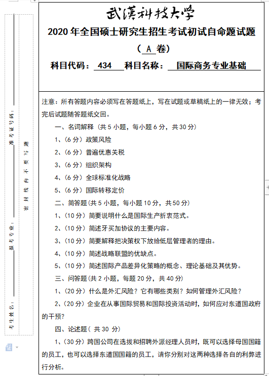 原文标题:【招生】2020年硕士研究生招生考试自命题试题