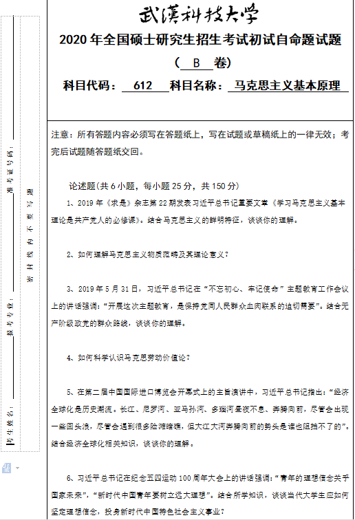 拼搏在线官网真题:武汉科技拼搏(中国)612马克思主义基本原理2020年硕士研究生招生考试初试自命题试题