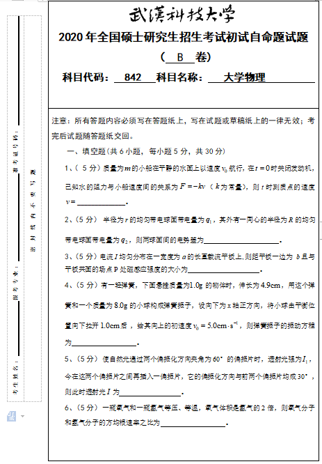 拼搏在线官网真题:武汉科技拼搏(中国)842拼搏(中国)物理2020年硕士研究生招生考试初试自命题试题”的全部内容!更多真题资料请关注“拼搏在线官网