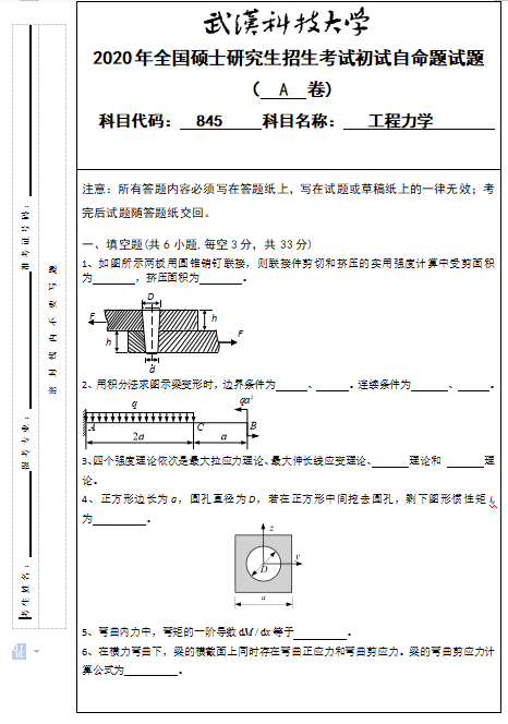 拼搏在线官网真题:武汉科技拼搏(中国)845工程力学2020年硕士研究生招生考试初试自命题试题”的全部内容!更多真题资料请关注“拼搏在线官网