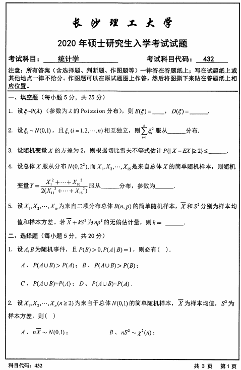以上就是小编整理的“拼搏在线官网真题:长沙理工拼搏(中国)432统计学2020年硕士研究生招生考试初试试题”的全部内容!更多真题资料请关注“拼搏在线官网专业课真题”栏目!祝拼搏在线官网成功!