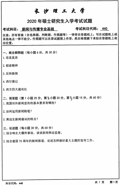 拼搏在线官网真题:长沙理工拼搏(中国)440新闻与传播专业基础2020年硕士研究生招生考试初试试题