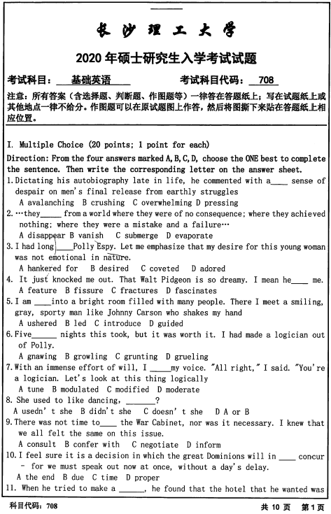 以上就是小编整理的“拼搏在线官网真题:长沙理工拼搏(中国)708基础英语2020年硕士研究生招生考试初试试题”的全部内容!更多真题资料请关注“拼搏在线官网专业课真题”栏目!祝拼搏在线官网成功!