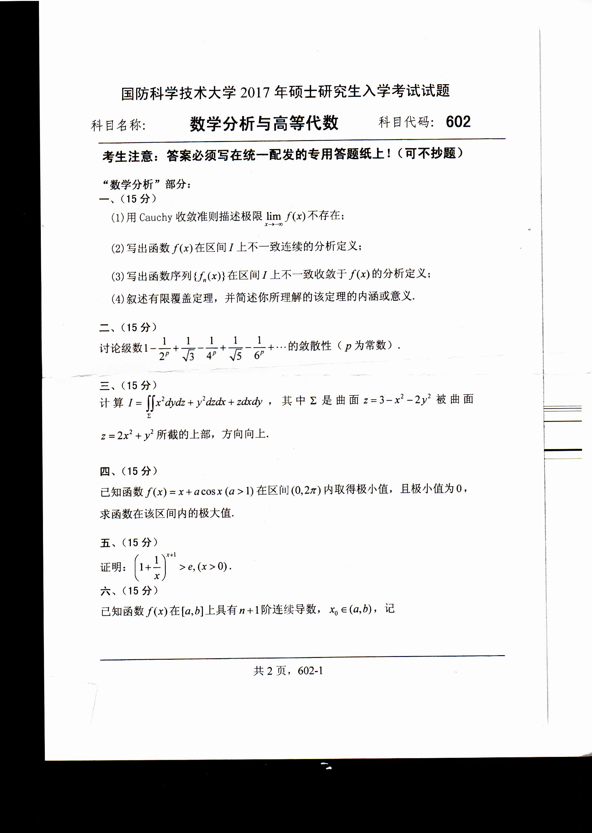 以上就是“拼搏在线官网真题:国防科技拼搏(中国)数学分析与高等代数2017年硕士研究生专业课试题”的相关内容,更多拼搏在线官网信息,请持续关注。
