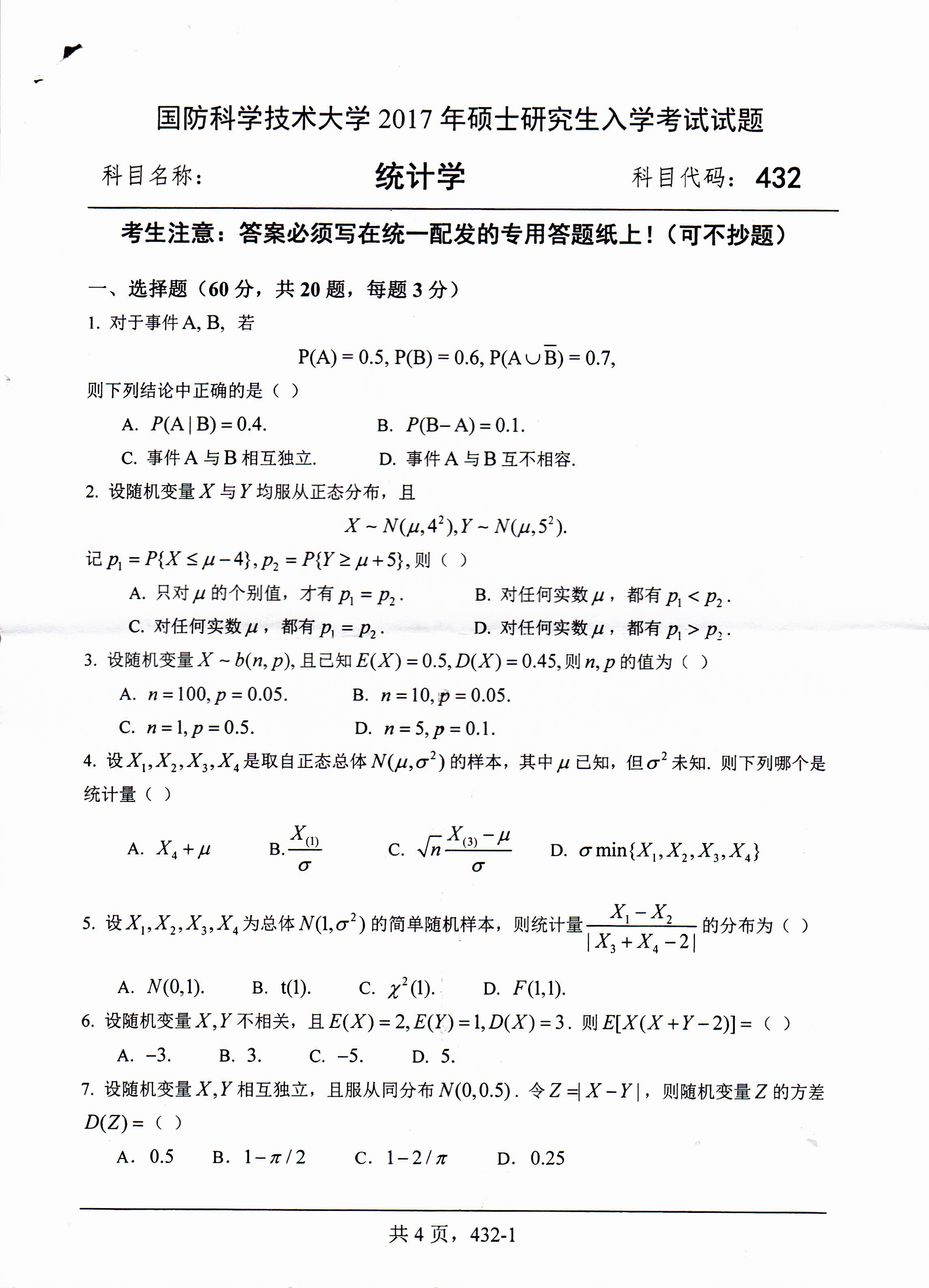 以上就是“拼搏在线官网真题:国防科技拼搏(中国)统计学2017年硕士研究生专业课试题”的相关内容,更多拼搏在线官网信息,请持续关注。