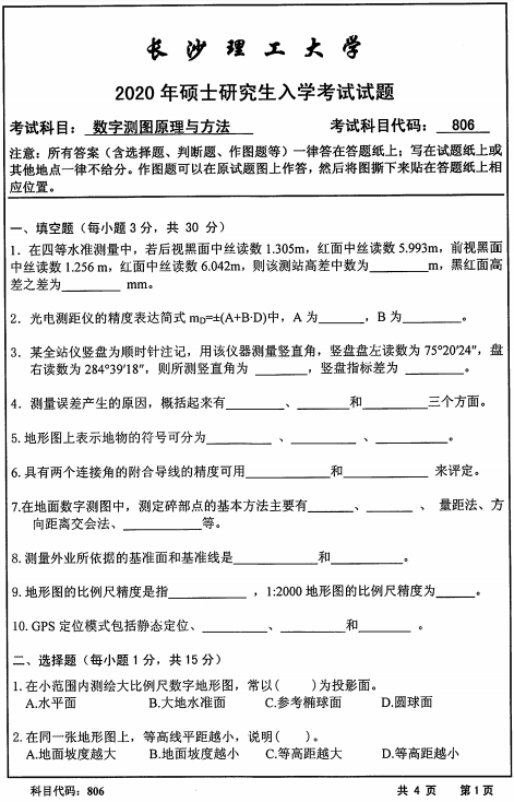 以上就是小编整理的“拼搏在线官网真题:长沙理工拼搏(中国)806数字测图原理与方法2020年硕士研究生招生考试初试试题”的全部内容!更多真题资料请关注“拼搏在线官网专业课真题”栏目!祝拼搏在线官网成功!