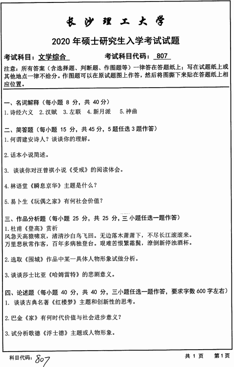 以上就是小编整理的“拼搏在线官网真题:长沙理工拼搏(中国)807文学综合2020年硕士研究生招生考试初试试题”的全部内容!更多真题资料请关注“拼搏在线官网专业课真题”栏目!祝拼搏在线官网成功!
