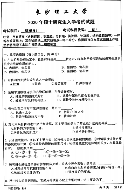 以上就是小编整理的“拼搏在线官网真题:长沙理工拼搏(中国)814机械设计2020年硕士研究生招生考试初试试题”的全部内容!更多真题资料请关注“拼搏在线官网专业课真题”栏目!祝拼搏在线官网成功!