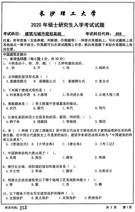 以上就是小编整理的“拼搏在线官网真题:长沙理工拼搏(中国)858建筑与城市规划基础2020年硕士研究生招生考试初试试题”的全部内容!更多真题资料请关注“拼搏在线官网专业课真题”栏目!祝拼搏在线官网成功!