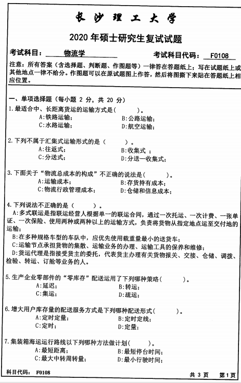 以上就是小编整理的“复试真题:长沙理工拼搏(中国)F0108物流学2020年硕士研究生招生考试复试试题”的全部内容!更多真题资料请关注“拼搏在线官网专业课真题”栏目!祝拼搏在线官网成功!