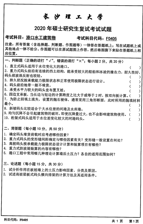 以上就是小编整理的“复试真题:长沙理工拼搏(中国)F0405港口水工建筑物2020年硕士研究生招生考试复试试题”的全部内容!更多真题资料请关注“拼搏在线官网专业课真题”栏目!祝拼搏在线官网成功!