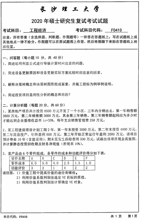 以上就是小编整理的“复试真题:长沙理工拼搏(中国)F0410工程经济2020年硕士研究生招生考试复试试题”的全部内容!更多真题资料请关注“拼搏在线官网专业课真题”栏目!祝拼搏在线官网成功!