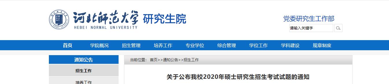 原文标题:关于公布我校2020年硕士研究生招生考试试题的通知