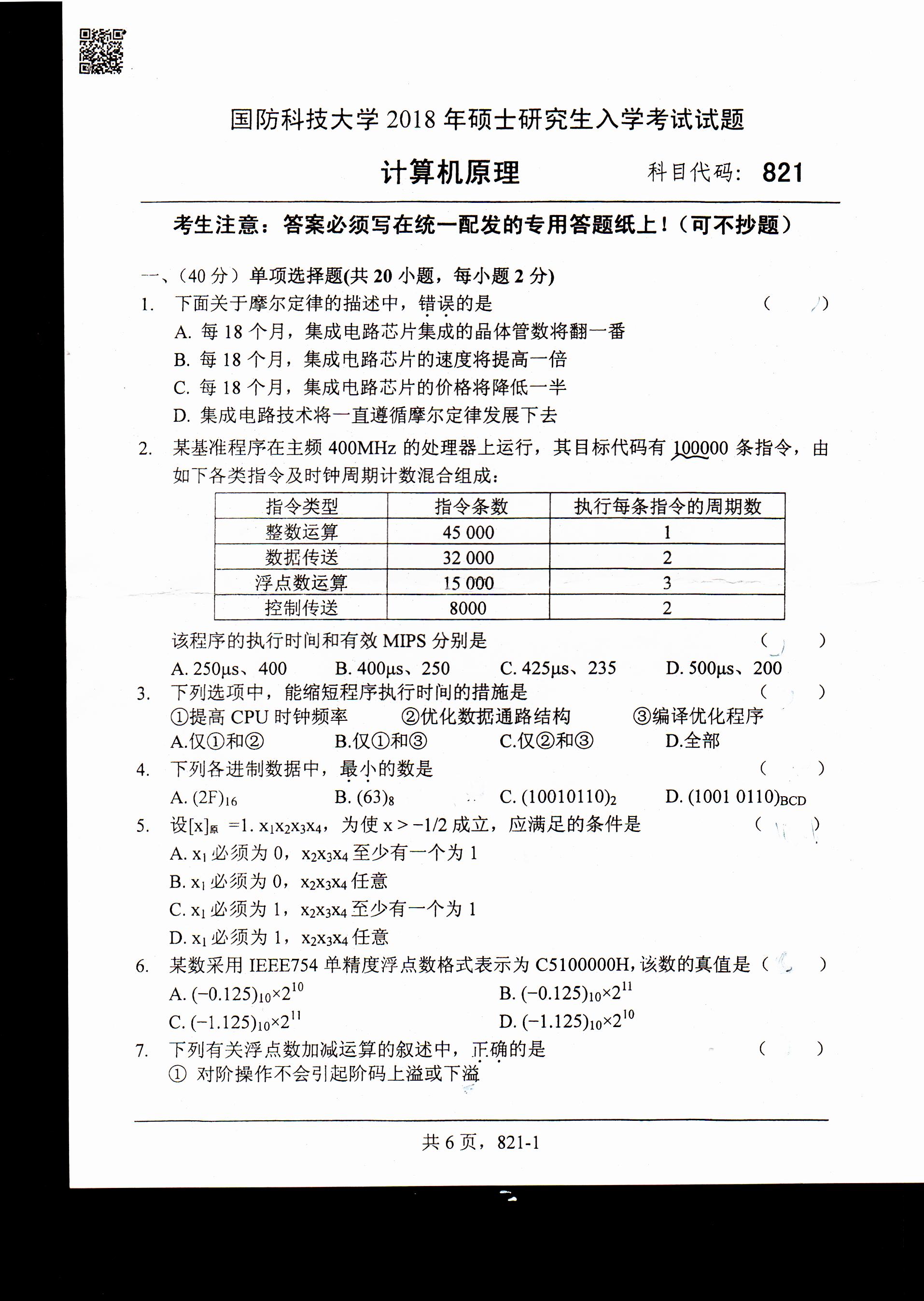 以上就是“拼搏在线官网真题:国防科技拼搏(中国)计算机原理2018年硕士研究生专业课试题”的相关内容,更多拼搏在线官网信息,请持续关注。
