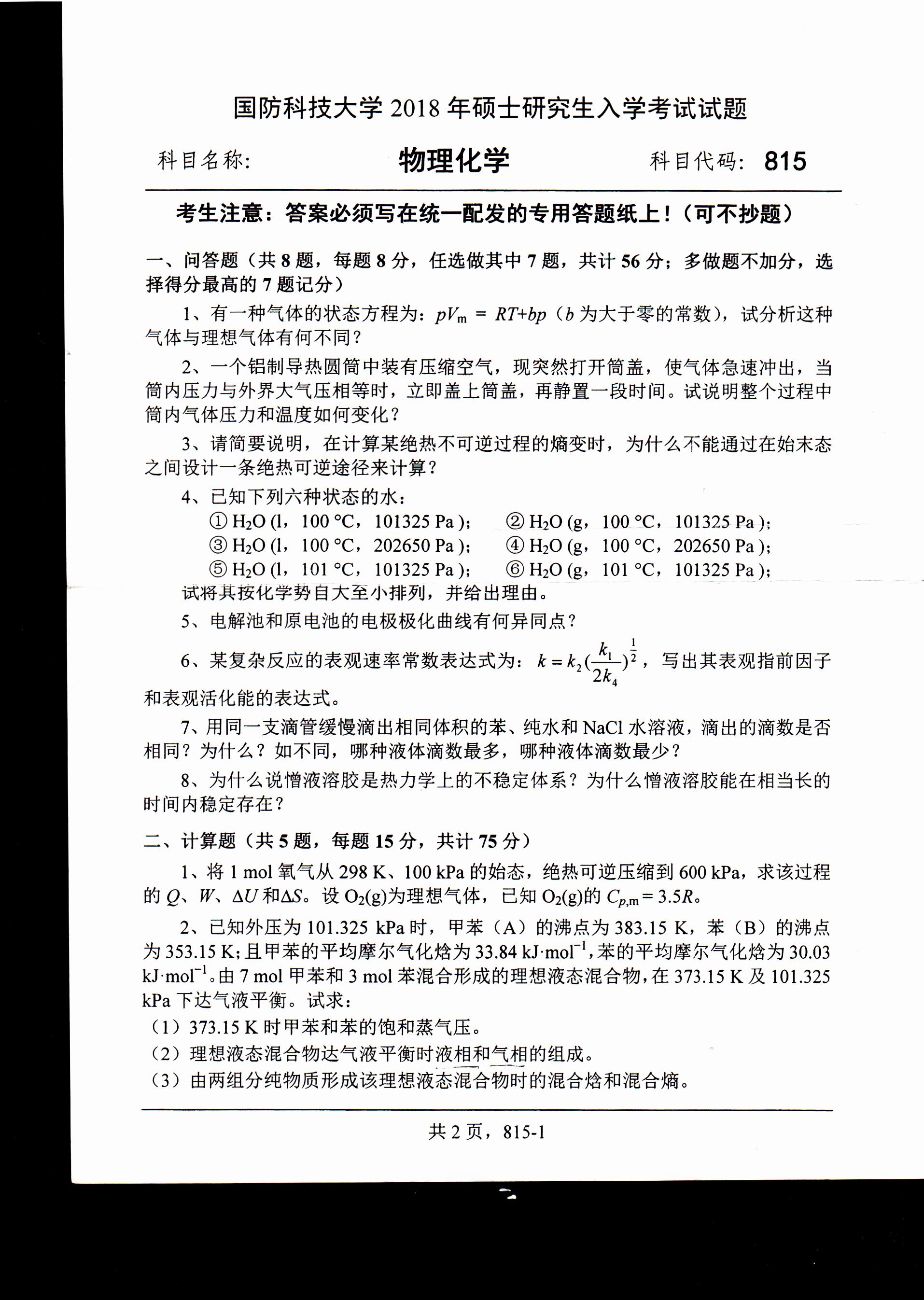 以上就是“拼搏在线官网真题:国防科技拼搏(中国)物理化学2018年硕士研究生专业课试题”的相关内容,更多拼搏在线官网信息,请持续关注。