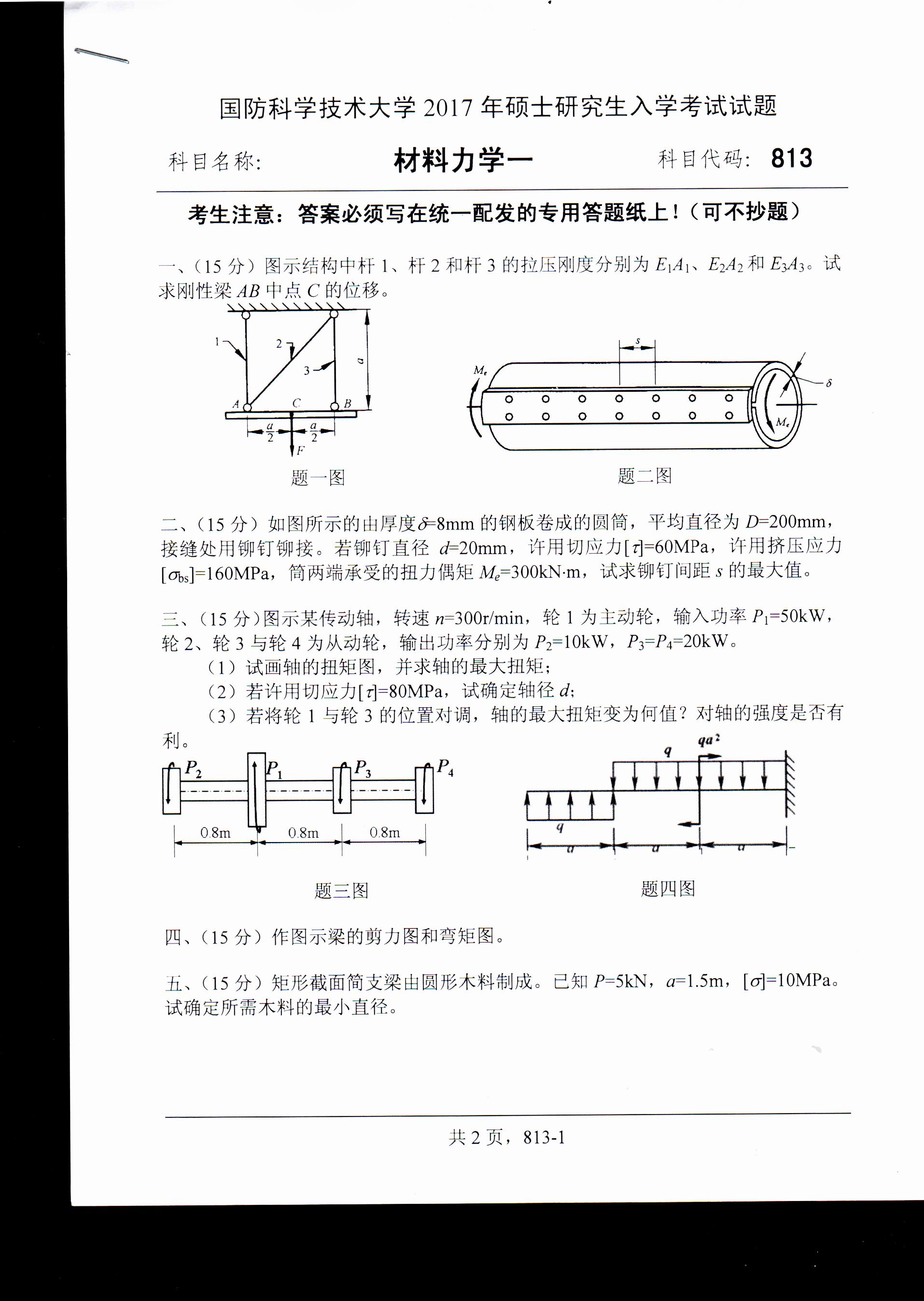 以上就是“拼搏在线官网真题:国防科技拼搏(中国)材料力学2017年硕士研究生专业课试题”的相关内容,更多拼搏在线官网信息,请持续关注。