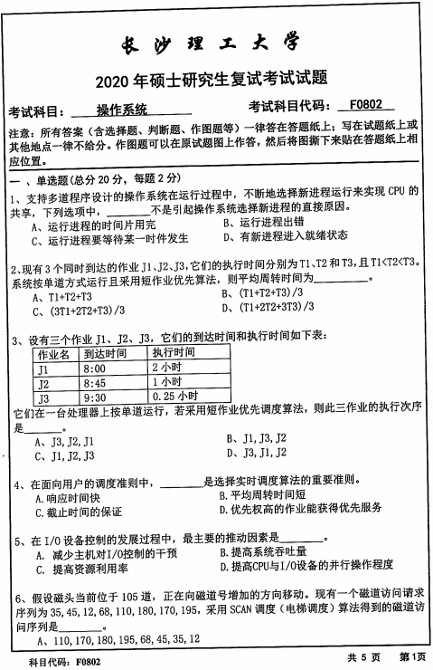 以上就是小编整理的“复试真题:长沙理工拼搏(中国)F0802操作系统2020年硕士研究生招生考试复试试题”的全部内容!更多真题资料请关注“拼搏在线官网专业课真题”栏目!祝拼搏在线官网成功!
