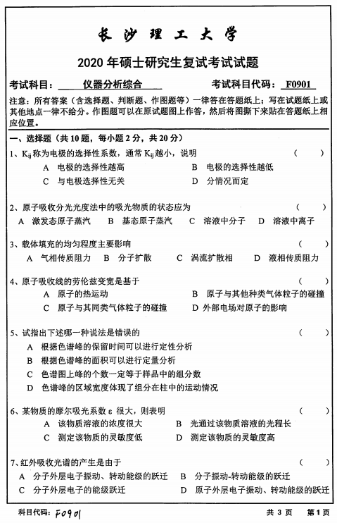 以上就是小编整理的“复试真题:长沙理工拼搏(中国)F0901仪器分析综合2020年硕士研究生招生考试复试试题”的全部内容!更多真题资料请关注“拼搏在线官网专业课真题”栏目!祝拼搏在线官网成功!