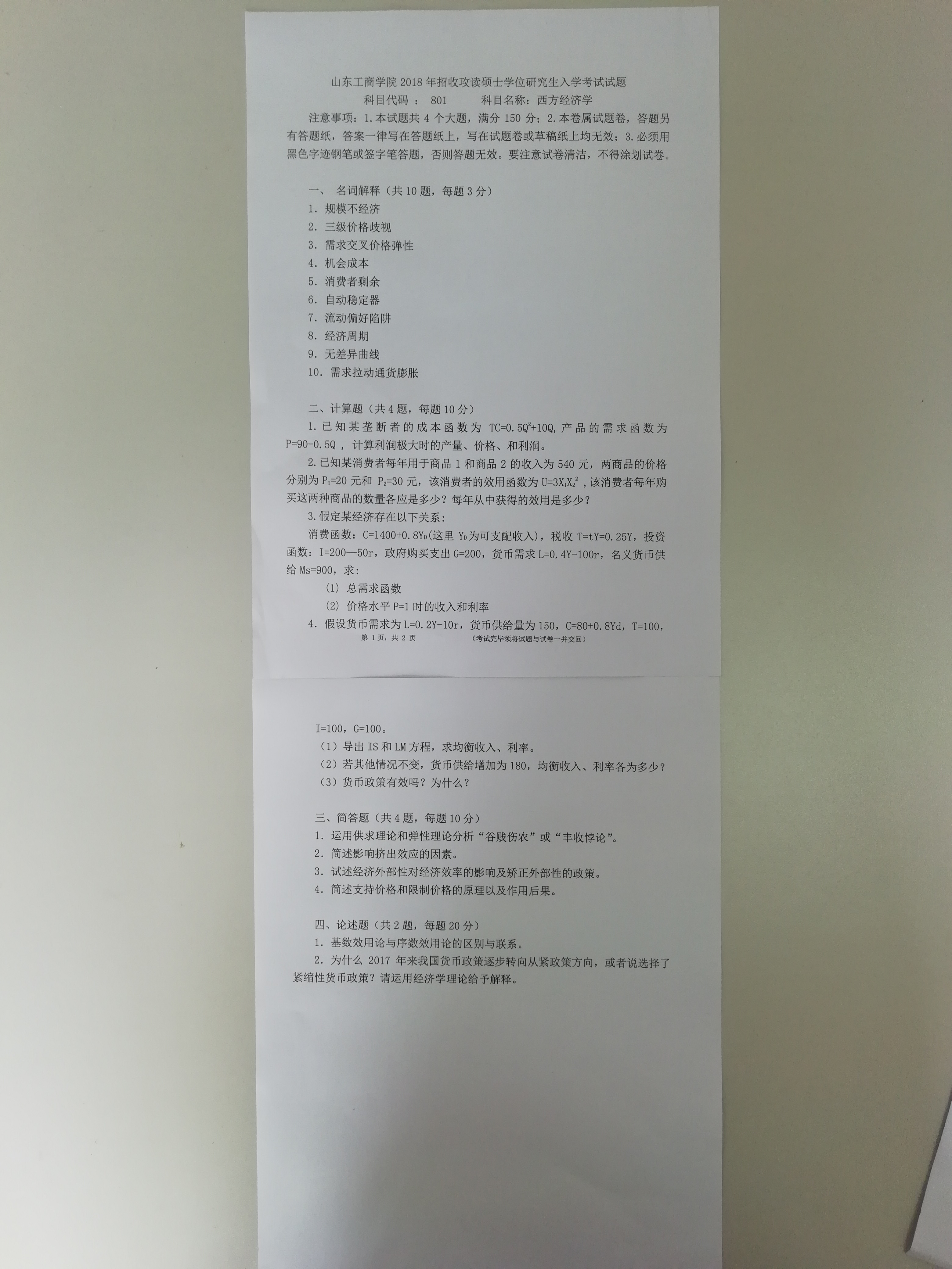 原文标题:山东工商学院2018硕士研究生考试专业课试题