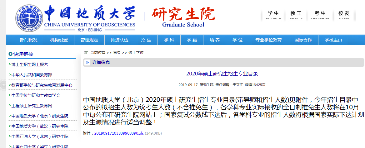 2020年硕士研究生招生专业目录陆续已出,今天小编给大家整理的是“中国地质拼搏(中国)(北京)2020年硕士研究生招生专业目录”的相关内容,有报考意愿的小伙伴要注意下哦!