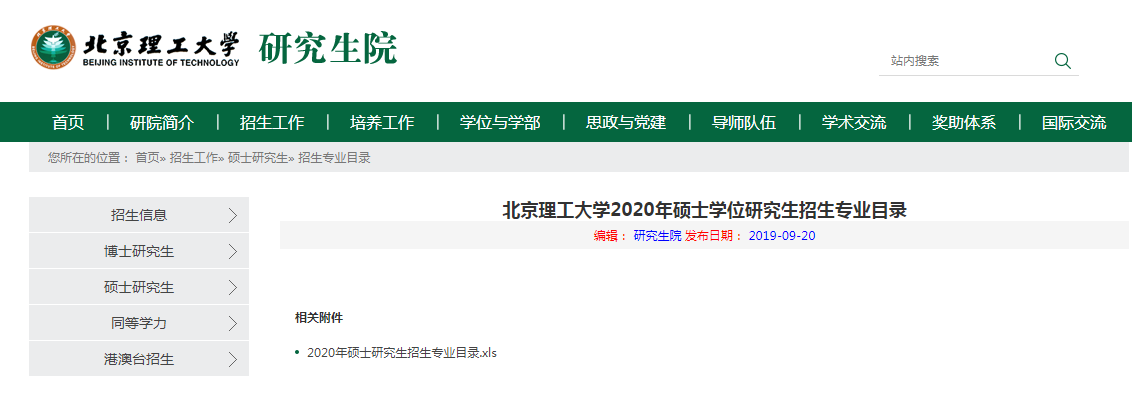2020年硕士研究生招生专业目录陆续已出,今天小编给大家整理的是“北京理工拼搏(中国)2020年硕士学位研究生招生专业目录”的相关内容,有报考意愿的小伙伴要注意下哦!