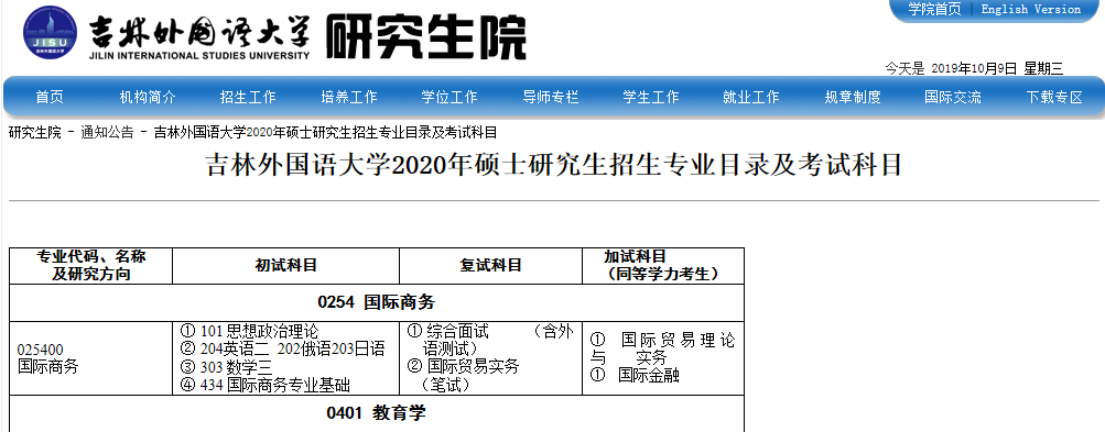 2020年硕士研究生招生专业目录陆续已出,今天小编给大家整理的是“吉林外国语拼搏(中国)2020年硕士研究生招生专业目录及考试科目”的相关内容,有报考意愿的小伙伴要注意下哦!