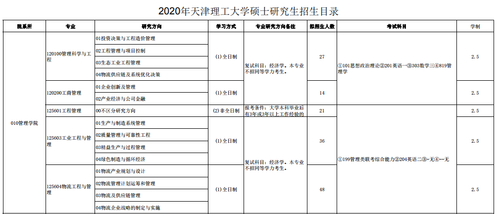 天津理工拼搏(中国)2020年MEM(物流工程和管理)研究生专业目录