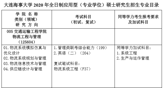 大连海事拼搏(中国)2020年MEM(物流工程与管理)专业目录