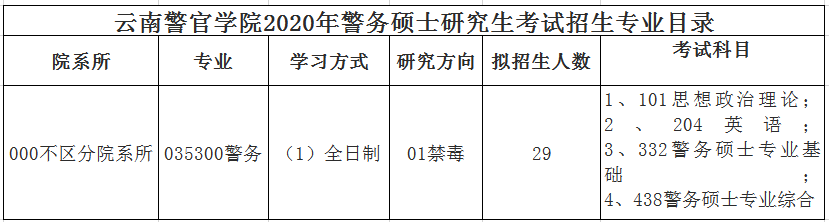 2020拼搏在线官网招生人数|云南警官学院2020年警务硕士研究生考试招生专业目录