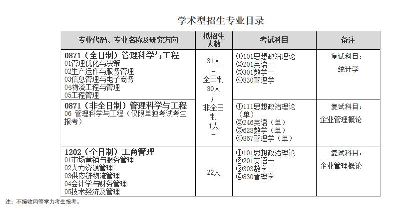 工商管理(MBA)、工程管理(MEM) (含物流工程与管理)、会计(MPAcc)专业