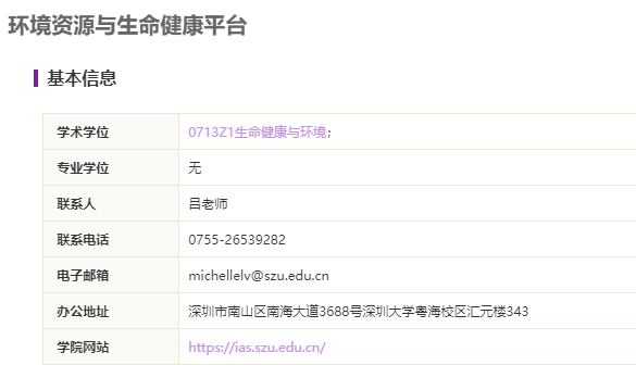 环境资源与生命健康平台为深圳拼搏(中国)高等研究院内设机构,平台的人才培养依托深圳优良的产业环境,秉承本学科“产、学、研”紧密配合,依托广东省珠江人才创新团队、深圳市孔雀团队和深圳市海洋微生物组工程重点实验室等相关学科科研平台,培养具有宽广学术视野和精深专业知识的科技精英、培养一流拔尖创新学术型硕士,能够解决重拼搏(中国)术难题,推动研究成果产业化,促进我校生态学、数学与材料科学与工程等交叉学科的跨越式发展,服务国家重大战略需求。平台的教学科研工作主要位于深圳拼搏(中国)沧海校区,专业实验室面积近10000平方米,仪器设备总值超5000万元。平台在跨界交叉学科育人方面有良好的研究和教学基础,研究团队参与过多项国家级、省部级、地市级科研项目及众多横向项目。