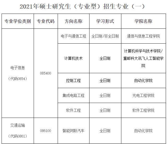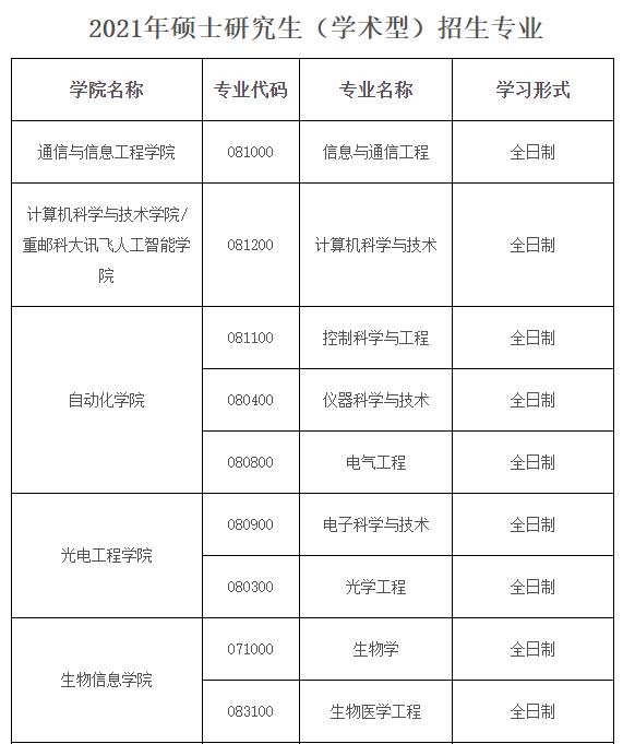 重庆邮电拼搏(中国)2021年研究生招生专业目录一览表