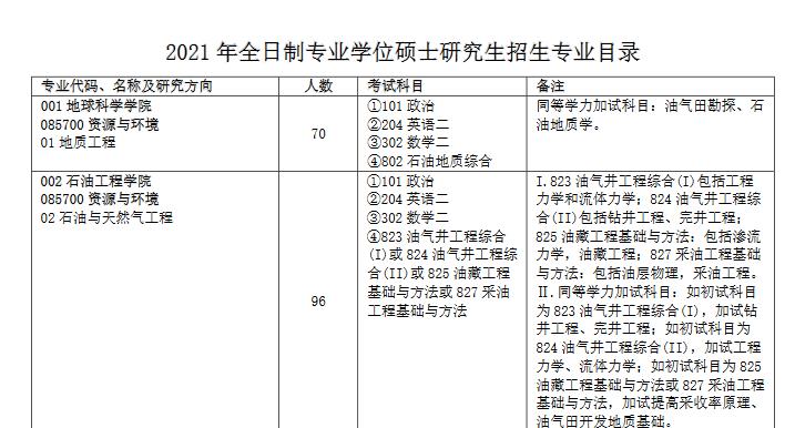 2021拼搏在线官网专业目录:中国石油拼搏(中国)(北京)2021年全日制专业学位硕士研究生招生专业目录