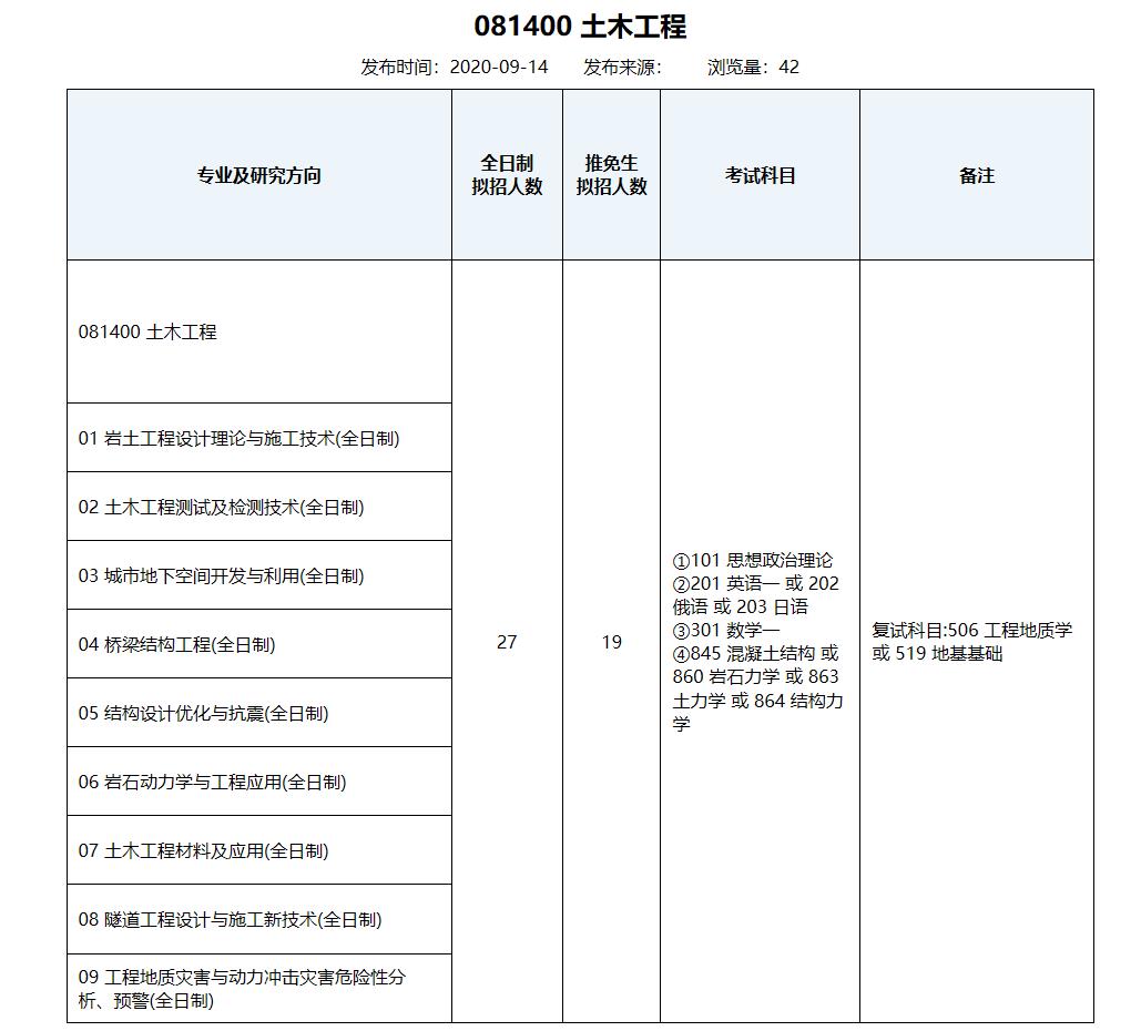 2021拼搏在线官网专业目录:北京科技拼搏(中国)土木与资源工程学院081400 土木工程2021年硕士研究生招生专业目录