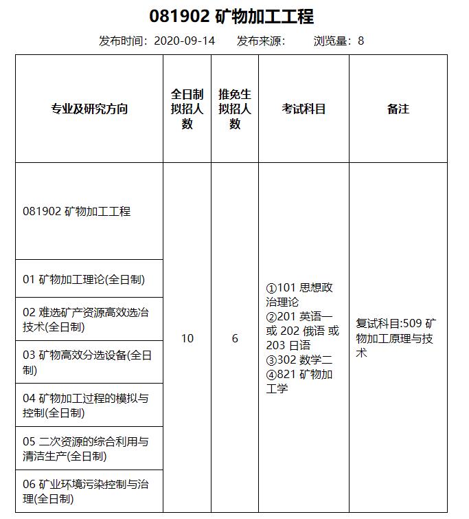2021拼搏在线官网专业目录:北京科技拼搏(中国)土木与资源工程学院081902 矿物加工工程2021年硕士研究生招生专业目录