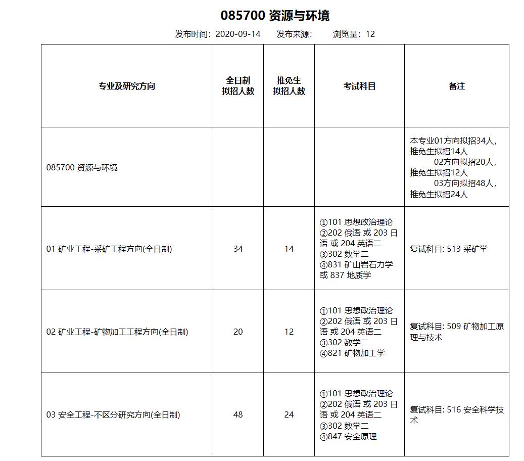 各位考生如果想知道2021某个院校具体招生人数是多少?考试科目有什么?复试要求都是什么?就需要从2021硕士研究生专业目录开始看起,从专业目录中找到自己需要的信息。今天,小编整理了“2021拼搏在线官网专业目录:北京科技拼搏(中国)土木与资源工程学院085700 资源与环境2021年硕士研究生招生专业目录”的相关内容,希望对大家有所帮助!